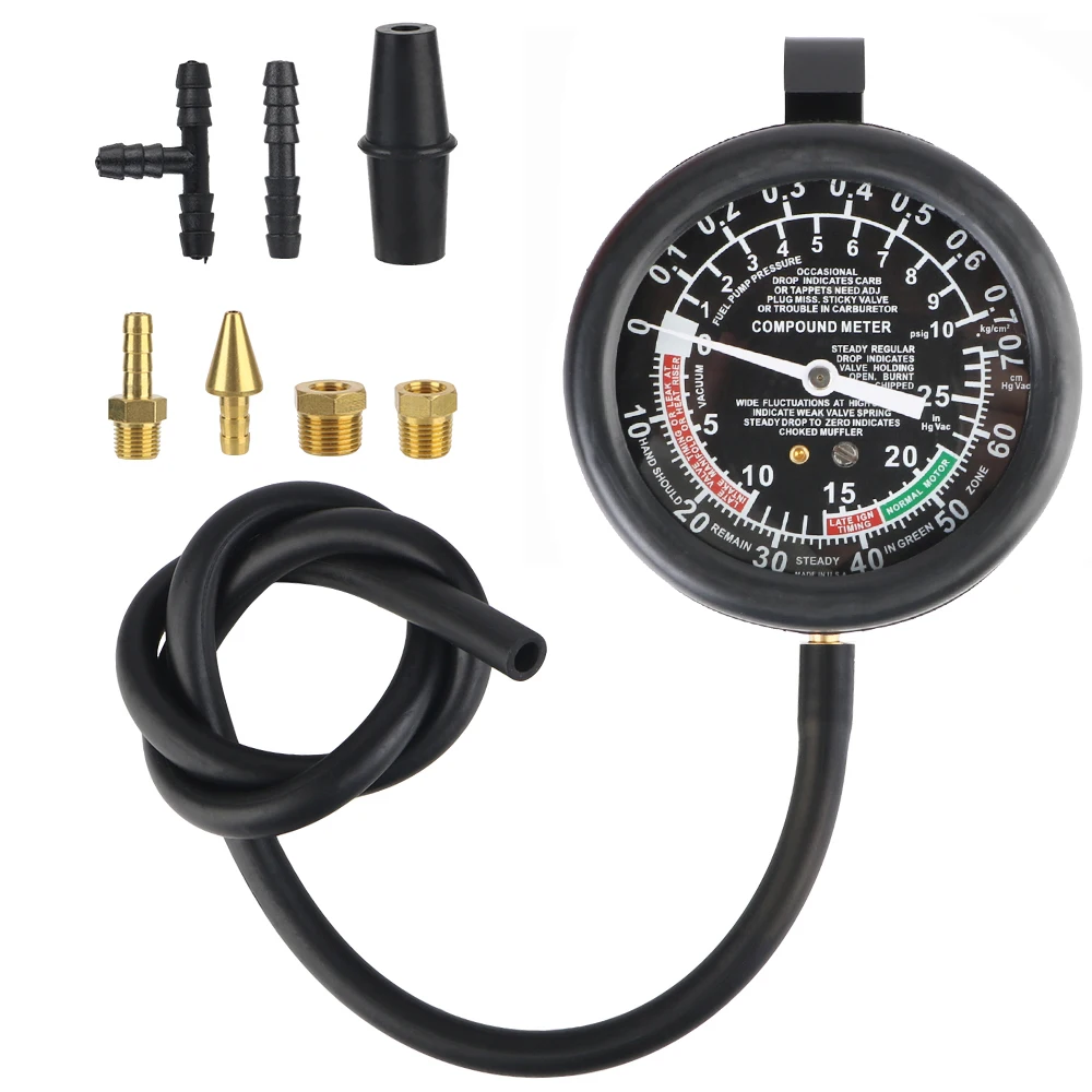 Manometro Kit tester per bombole automobilistiche Misuratore di compressione per motori a benzina sottovuoto con adattatore