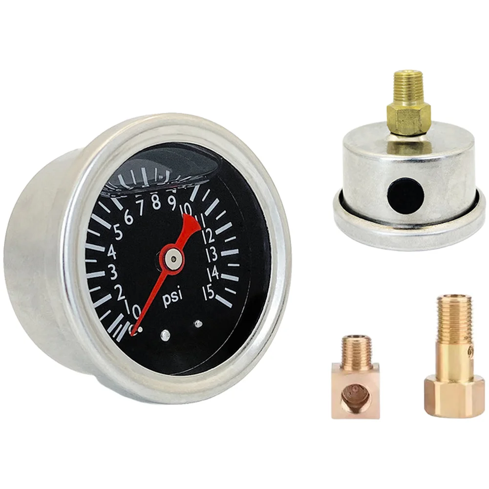 Manometro carburante in linea 015Psi compatto 15 dimensioni metallo riempito di olio per letture stabili in condizioni automobilistiche difficili