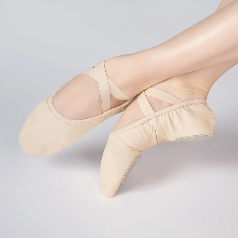 Scarpe da ballo per ragazze e donne Ballerine elasticizzate Pantofole da ballo in tela di pizzo libero Scarpa da ballo per balletto con suola morbida divisa elastica per bambini