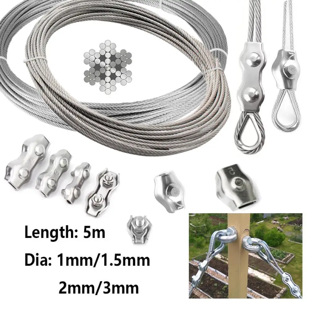 Cavo fune metallica in acciaio inossidabile 304, 1-3 mm, nucleo 7X7, con chiusura, clip e ghiera a doppio tubo, un cavo di sollevamento relativamente morbido