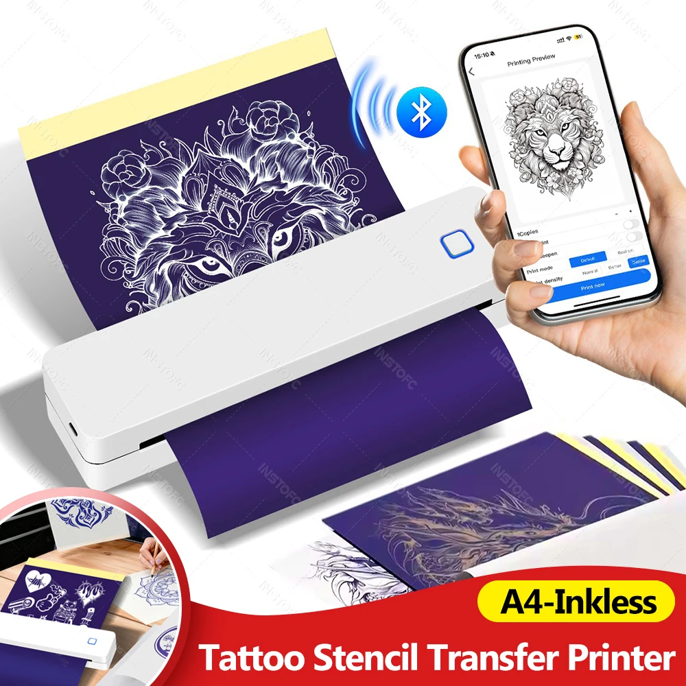 Stampante portatile A4 per tatuaggi, wireless, termica, per stencil e trasferimento su Android/iOS, o carta per trasferimento tatuaggi