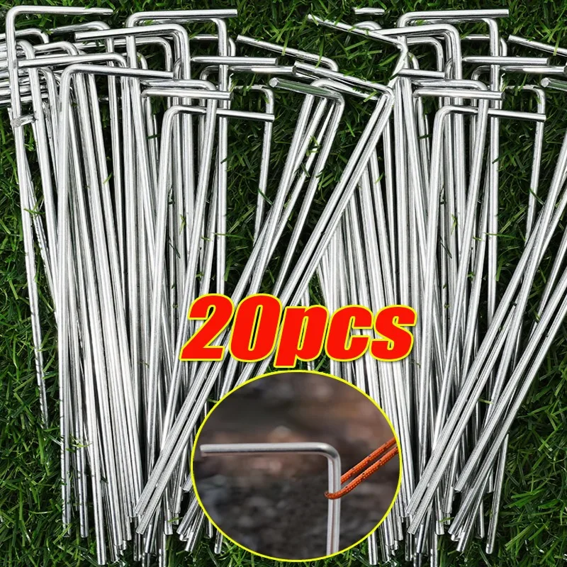 Picchetti da terra per tende a 7 caratteri Attrezzatura da campeggio esterna Ganci di fissaggio in acciaio Pioli per tende riutilizzabili per il fissaggio di picchetti per tappeti Attrezzi da giardinaggio