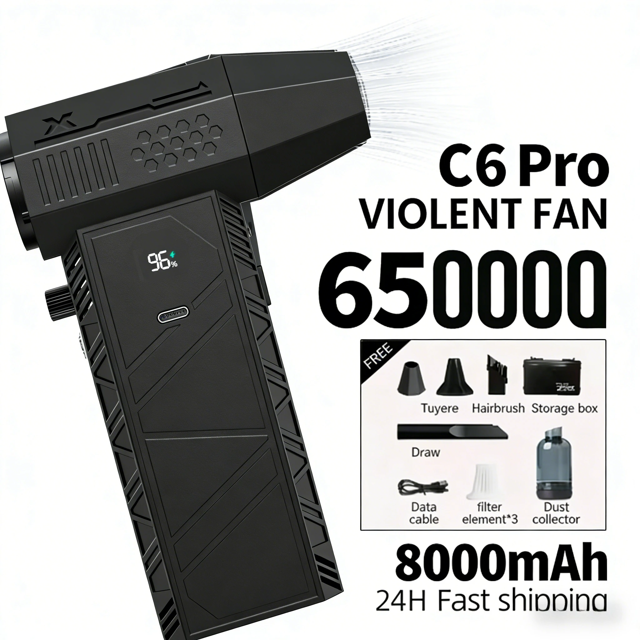 Ventilatore Turbo Portatile con Motore Brushless da 350.000 RPM, Velocità del Vento 58m/s, Ricaricabile USB, Soffiatore Potente per Pulizia Auto e PC