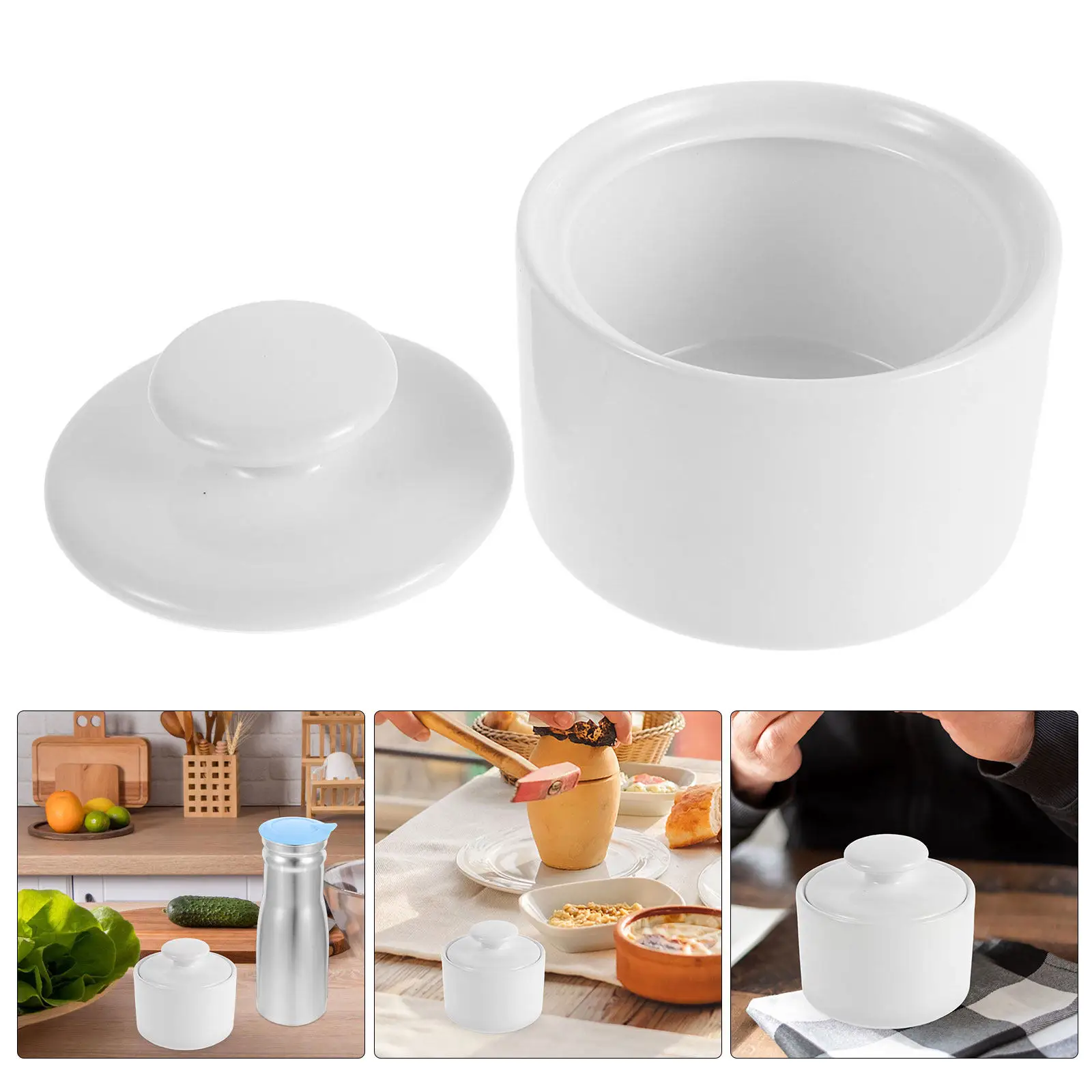 Barattolo per Zucchero da 170Ml con Coperchio, Contenitore in Ceramica Bianca per Caffè e Zucchero, per Conservazione su Piano di Lavoro, Ciotola Decorativa per Cucina e Bar