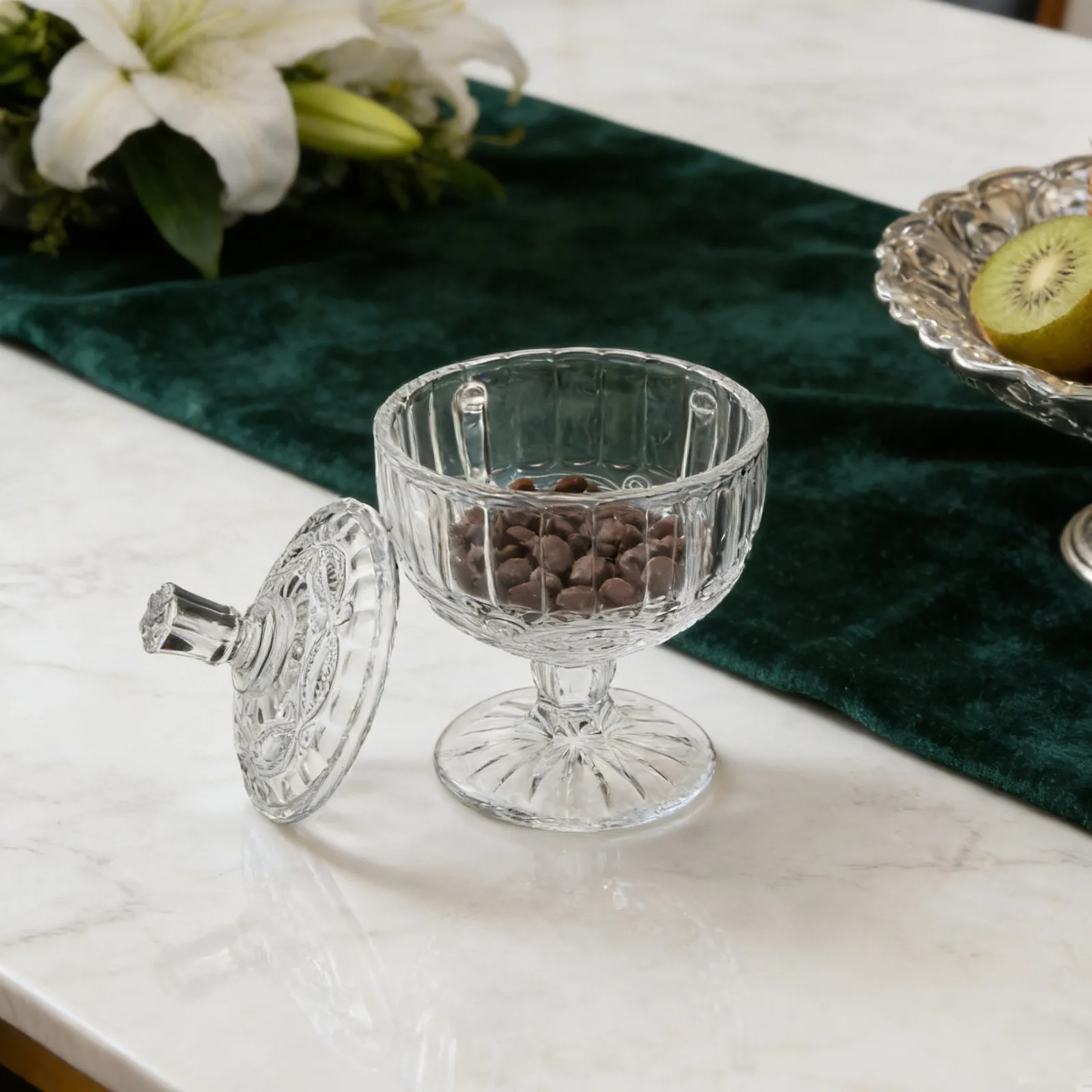 Barattolo Vintage in Vetro Trasparente con Piede, Vaso Contenitore per Caramelle con Coperchio, Ciotola Decorativa Europea Goffrata per Caramelle, Centrotavola per Matrimoni