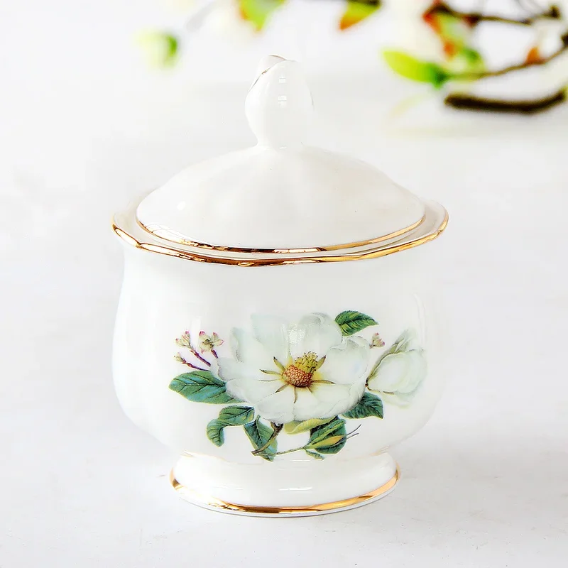 Zuccheriera Bone China con coperchio, stoviglie da caffè in porcellana, contenitore per caffè in ceramica alla moda, barattoli di stoccaggio, lattine per condimenti da cucina