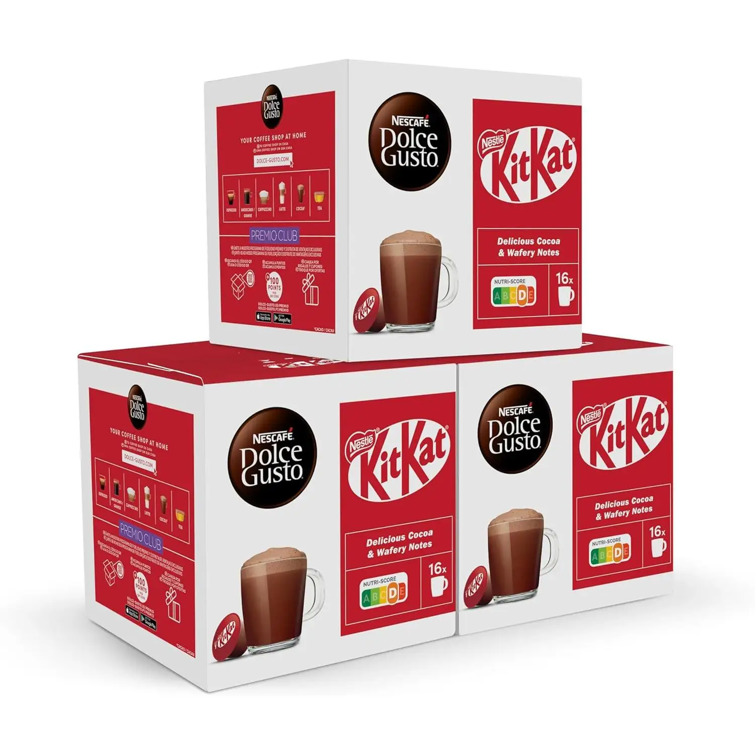 Kitkat al cioccolato Nescafé Dolce Gusto, confezione da 3 x 16 capsule - Totale: 48 capsule KITKAT, gusto waffle e cacao, ritorna al gusto della giovinezza, goditi il kitkat al cioccolato