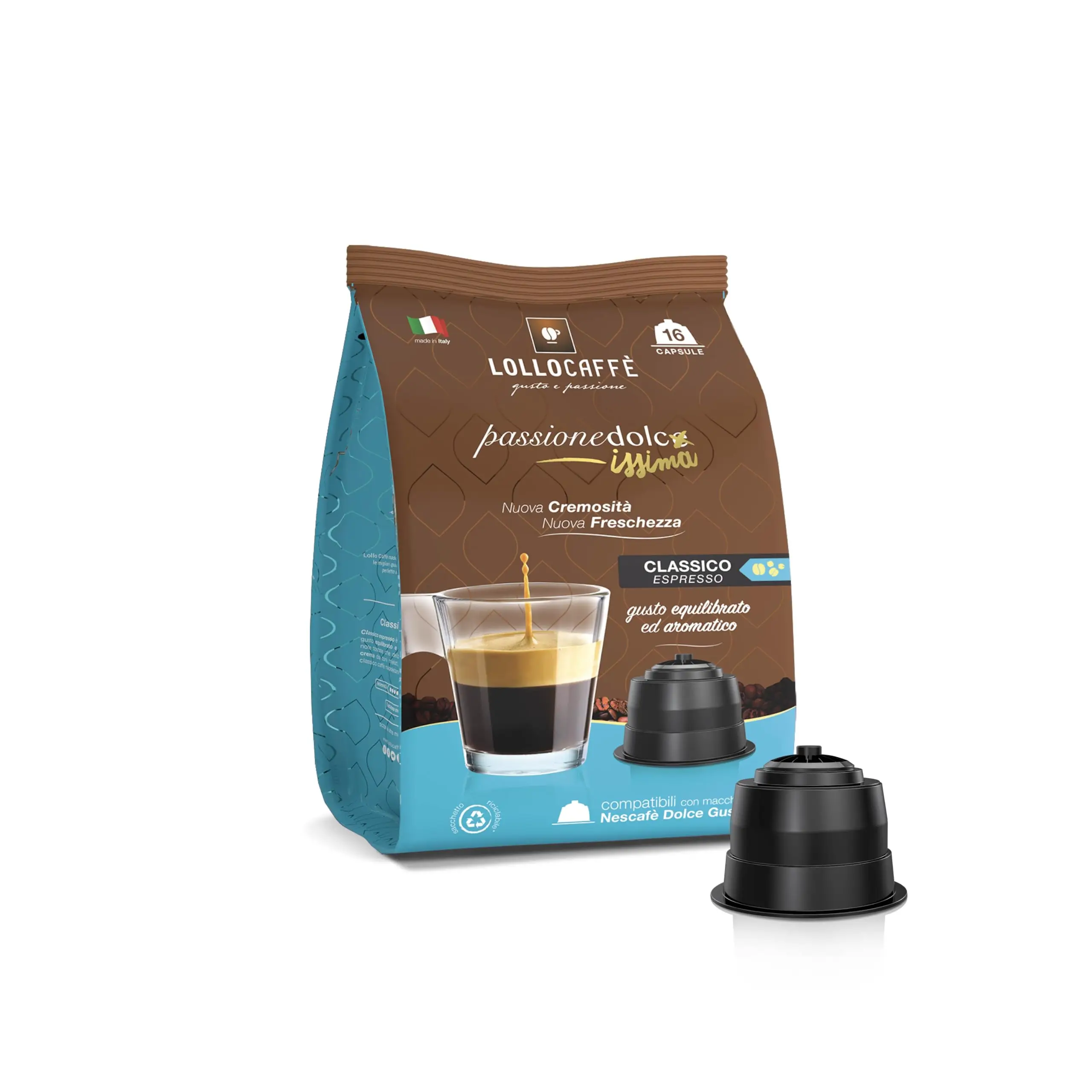 Lollo Caffè Passione Dolcissima Miscela Classica- 96 capsule (6 confezioni da 16) - Compatibili con le Macchine Nescafè* Dolce Gusto*