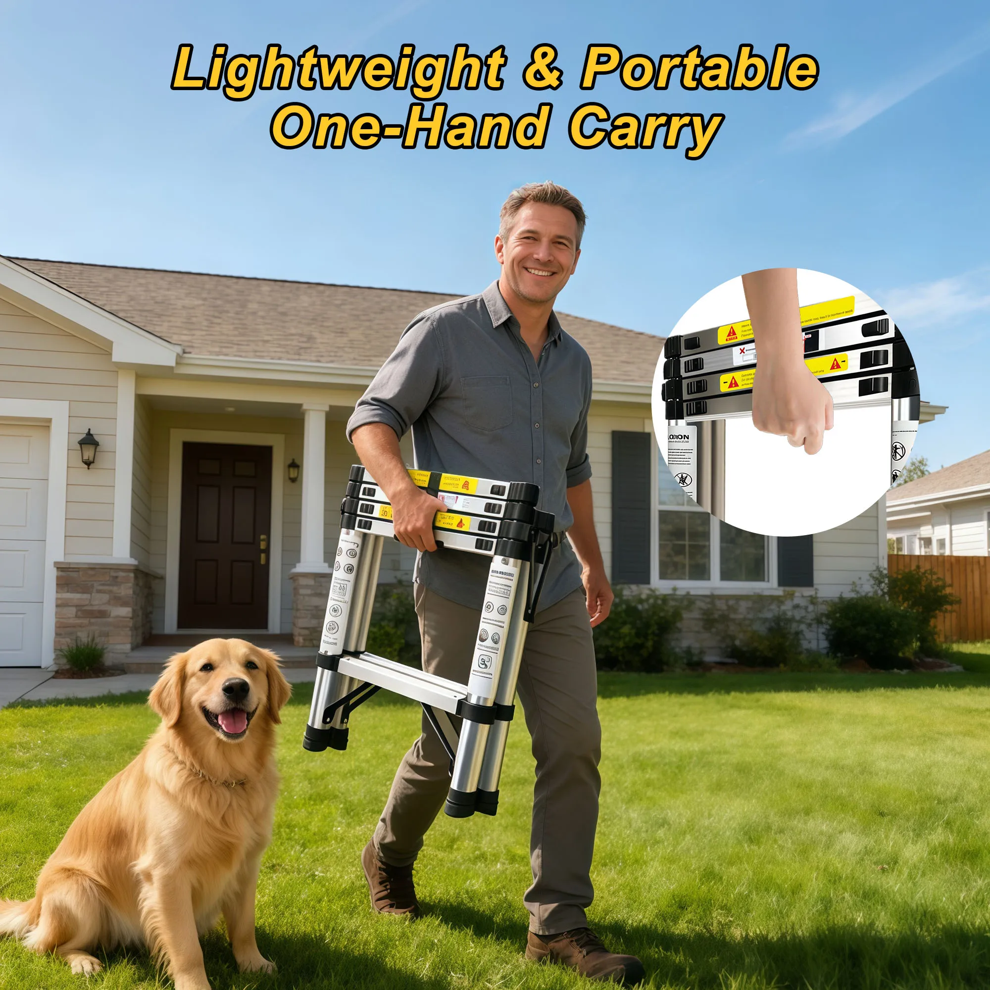 Scala Telescopica 5m (2.5+2.5) in Acciaio Inox, Portatile, Standard EN131, con Ganci Staccabili, Capacità di Carico 150kg