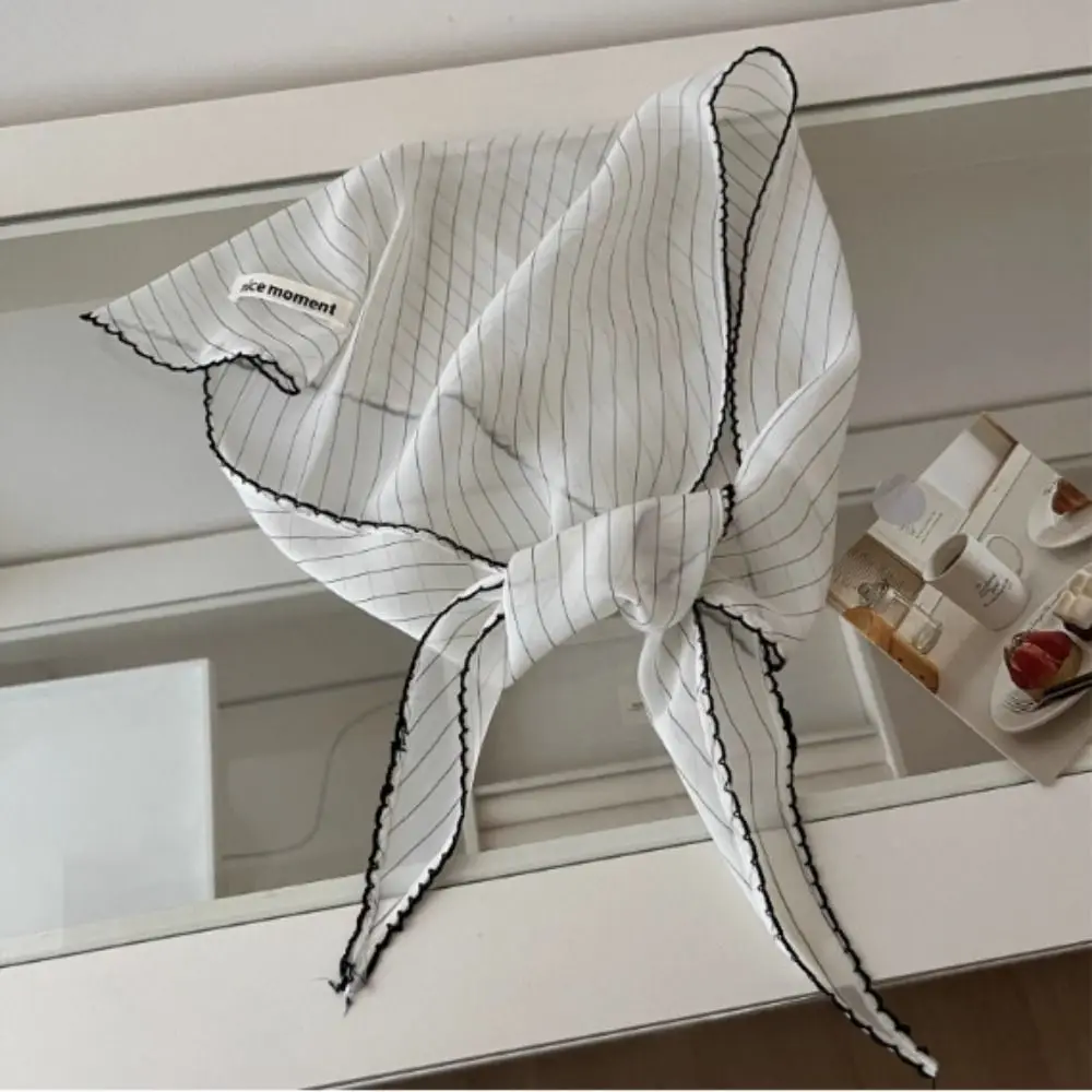 Dolce francese stile pastorale triangolo fascia lavorata a maglia piccolo fiore foulard cappello fatto a mano all'uncinetto fascia asciugamano primavera estate