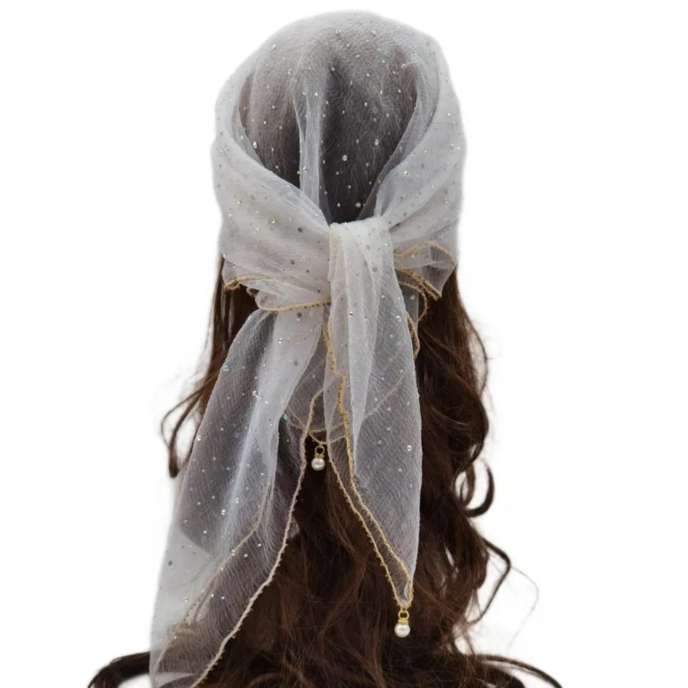 Nuovo arrivo Rayon capelli netto perline uncinetto perla per le donne moda tinta unita elastico Snood accessori per capelli Casual da donna