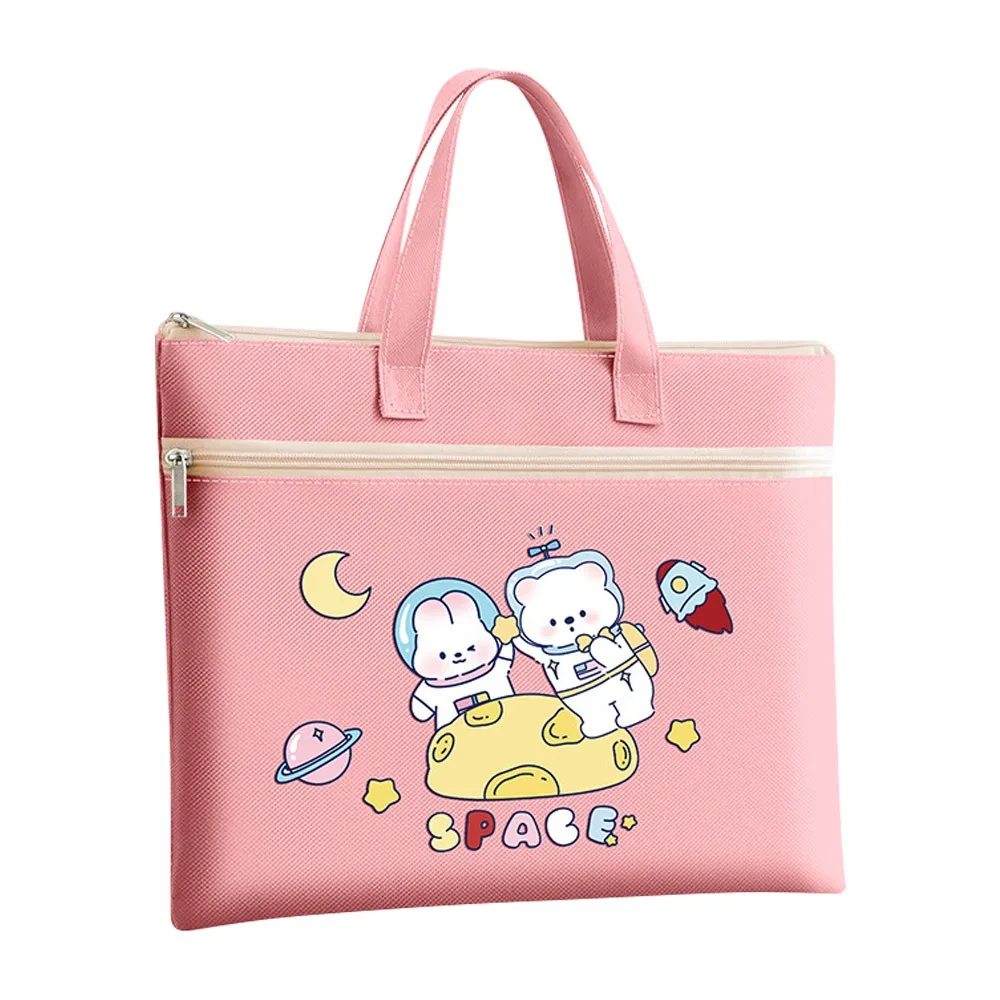 Simpatica borsa da scuola tote a doppio strato Borsa per documenti A4 in tela di cartone animato Borsa per tutoraggio di grande capacità Studenti