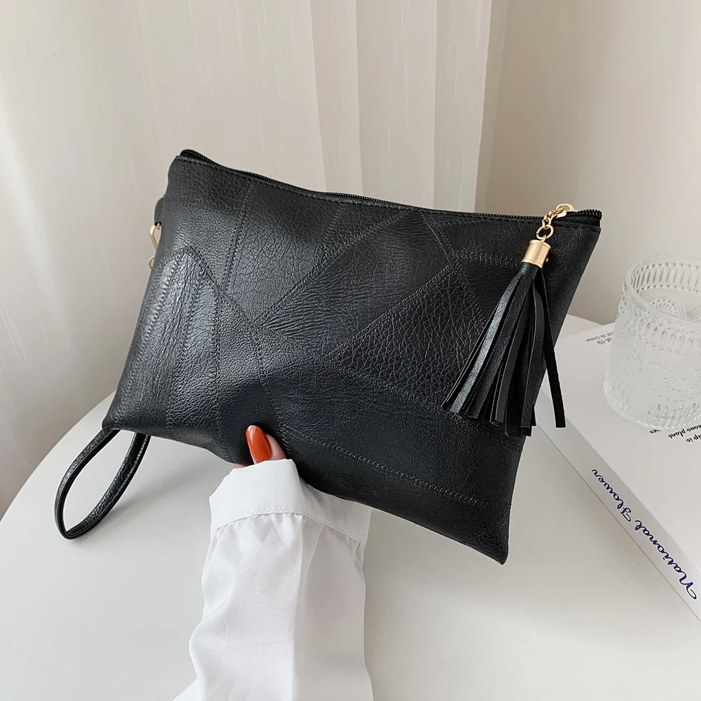 Borse da polso piccole con nappa da donna in tinta unita in pelle PU vintage femminile
