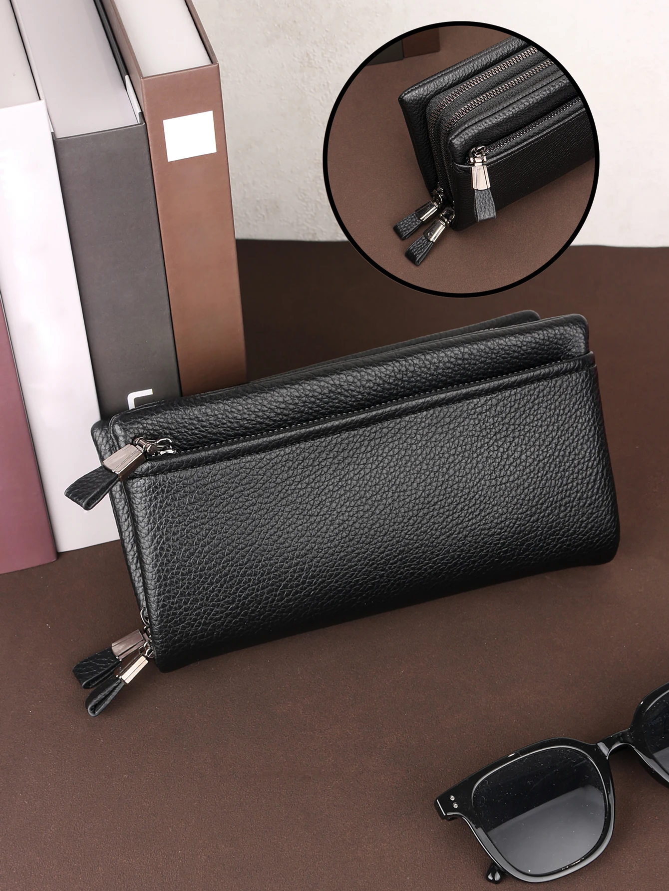 WiliamPOLO Portafoglio da lavoro in vera pelle Borsa da polso lunga con doppia cerniera da uomo Borsa da telefono in pelle bovina ad alta capacità