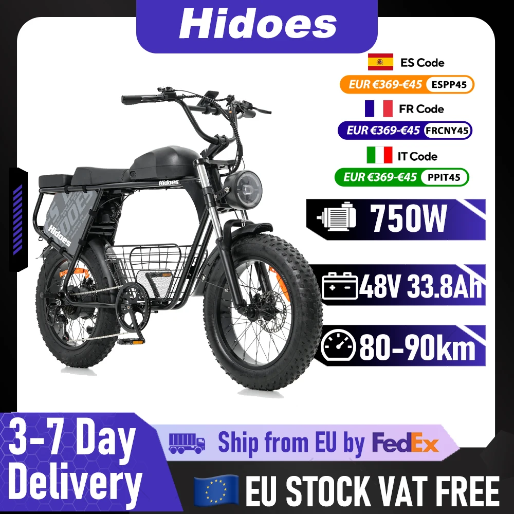 Bicicletta Elettrica Hidoes B9 con Motore 750W, Batteria 48V33.8AH, Autonomia 80-90km, 7 Velocità, Pneumatici Fat da 20 Pollici, Trasmissione per Adulti