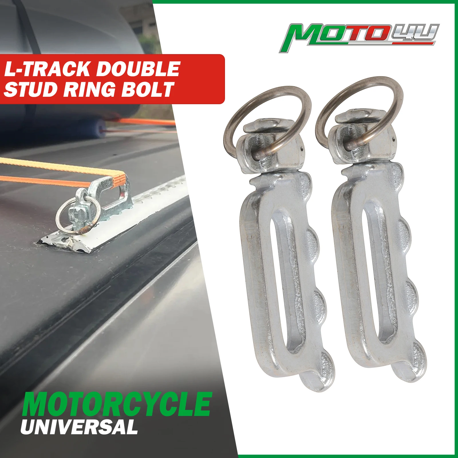 MOTO4U 2 pezzi L-Track doppio perno Tie Down Fitting Trailer Cargo End Ring Bolt Tie Down Anchor Point Rail caricamento strumenti di fissaggio