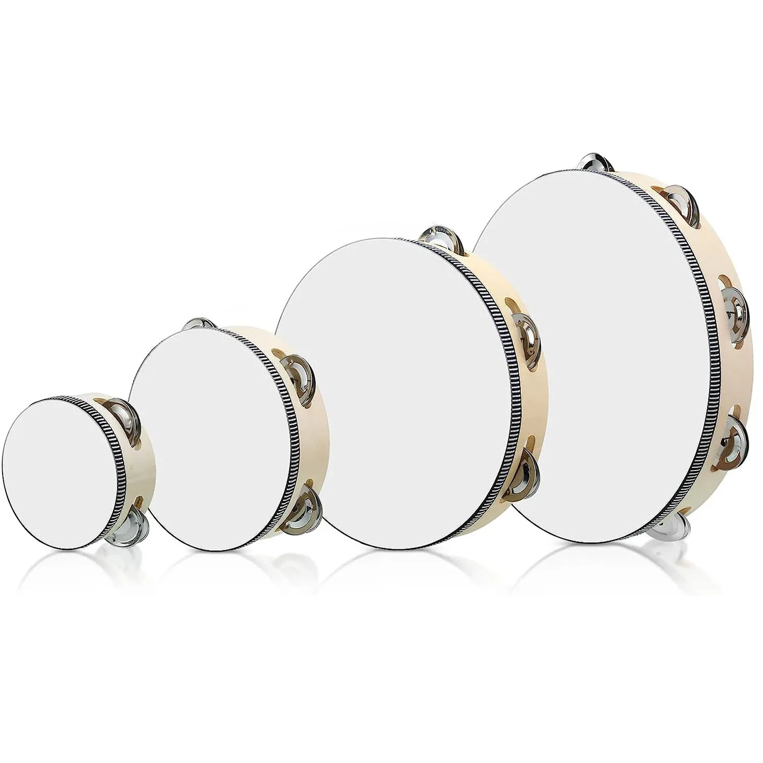 Tamburello in legno Miwayer con jingles in metallo - Strumento a percussione portatile da 4/6/8/10 pollici per lezioni musicali, gruppi e coro della chiesa