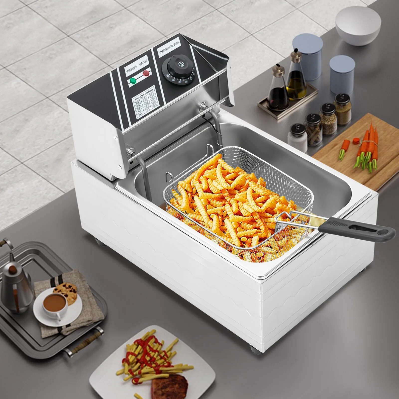 Friggitrice in acciaio inossidabile Capacità 6,3 QT 2500 W Funzionamento sicuro con coperchio e indicatore luminoso Ideale per uso domestico e commerciale