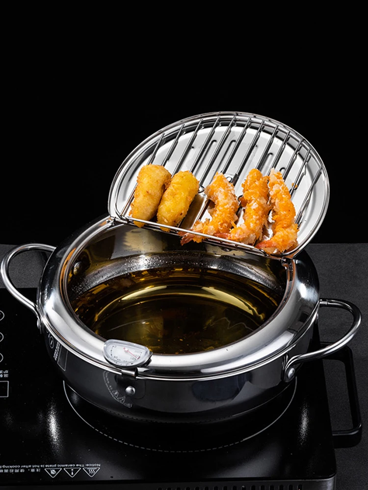 304 Pentola in acciaio inossidabile Friggitrice da cucina Tempura Friggitrice Padella Pentola da cucina Pollo Fritto Padelle Strumenti di cottura