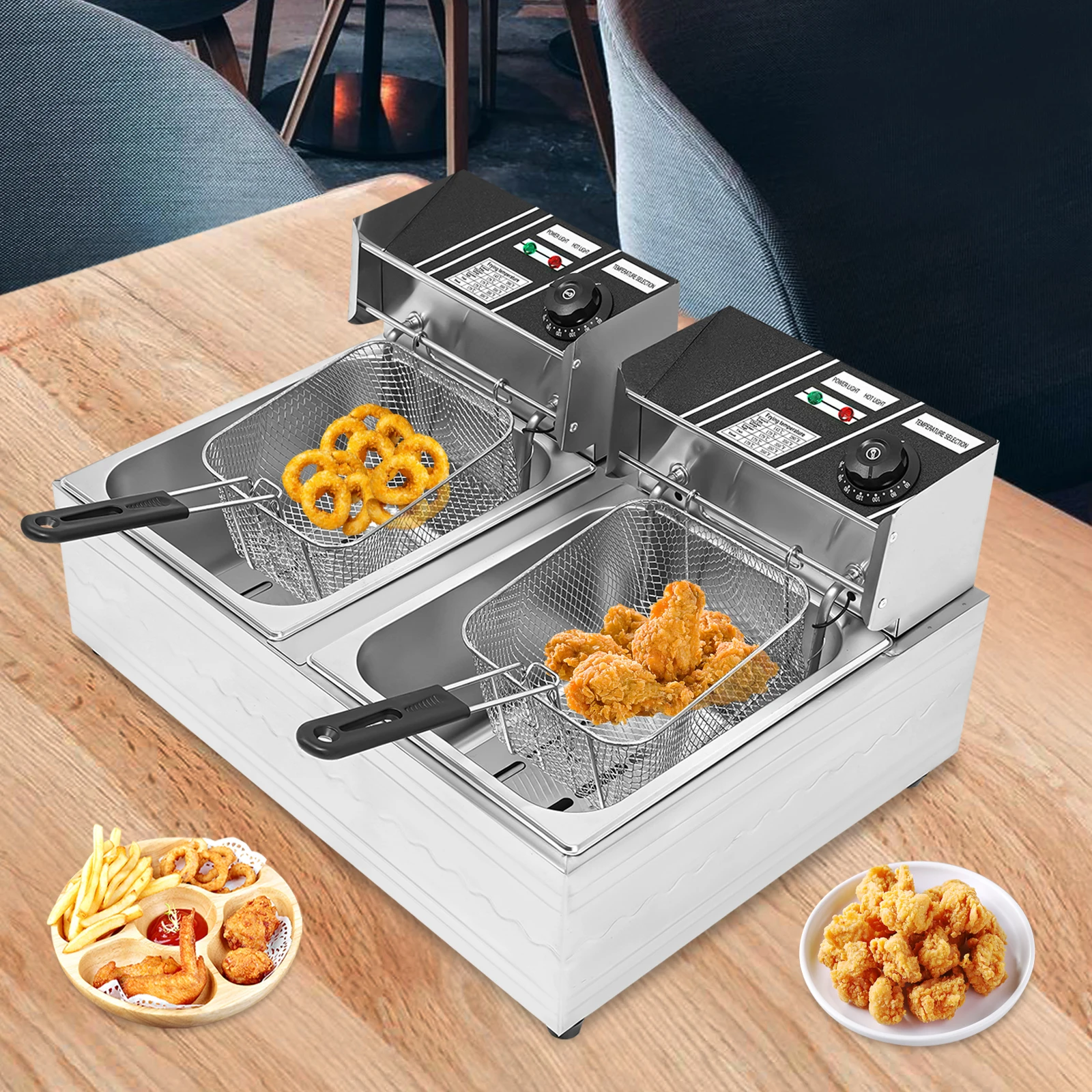 Friggitrice Elettrica 5KW 12L in Acciaio Inox con Doppia Vasca e Zone Fredde | Cestello per Friggitrice per Ristoranti Fast Food e Snack Bar