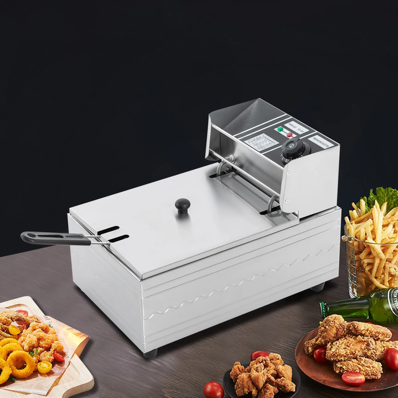 Friggitrice Elettrica Argento, Friggitrice Rettangolare da Tavolo in Acciaio Inox 6L 220V per Ristoranti, Centri Commerciali
