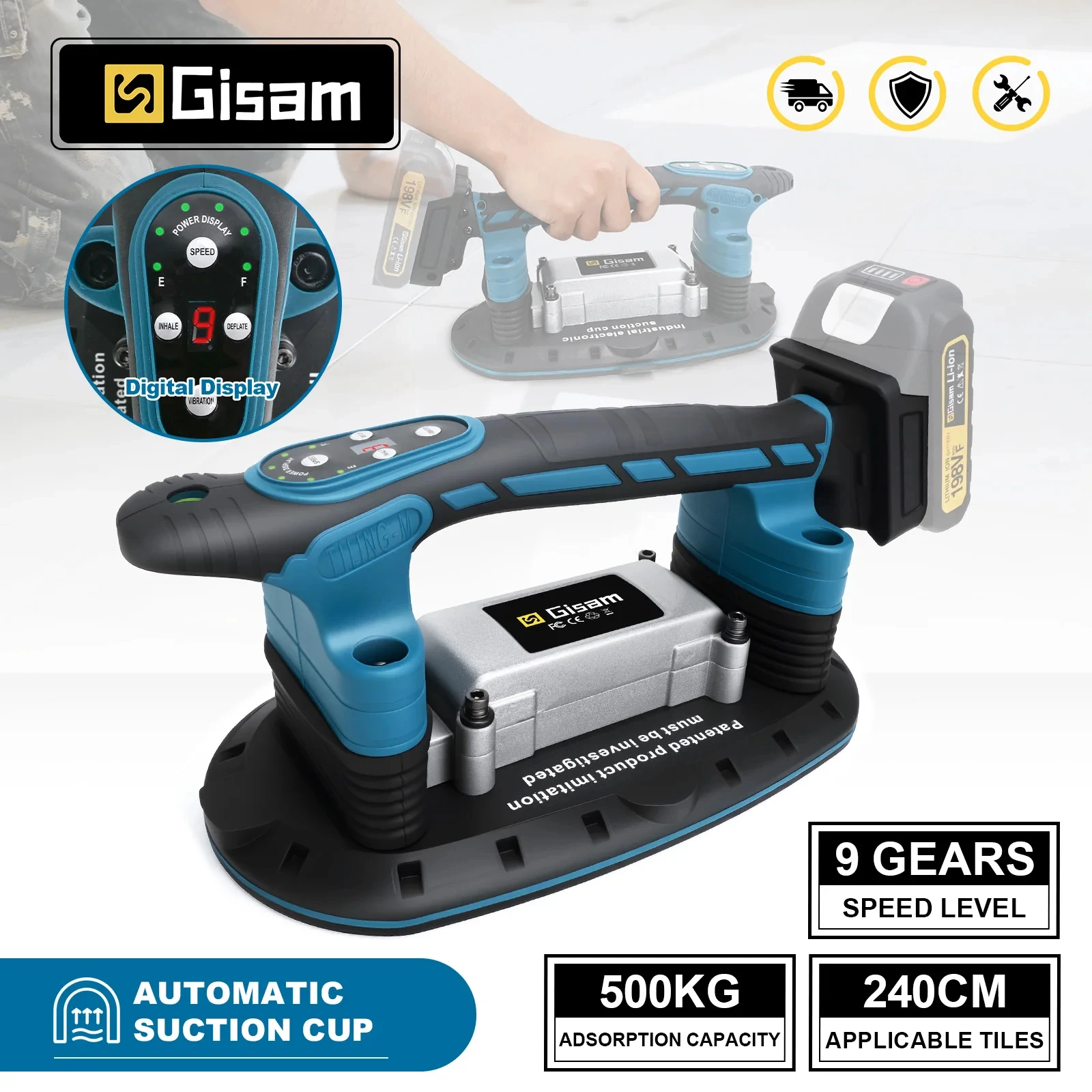 Gisha 500KG Strumento di Installazione di Piastrelle Macchina di Vibrazione Antiscivolo Vibratore Piastrellatura Livellamento Posa 9 Velocità Perni Batteria Makita