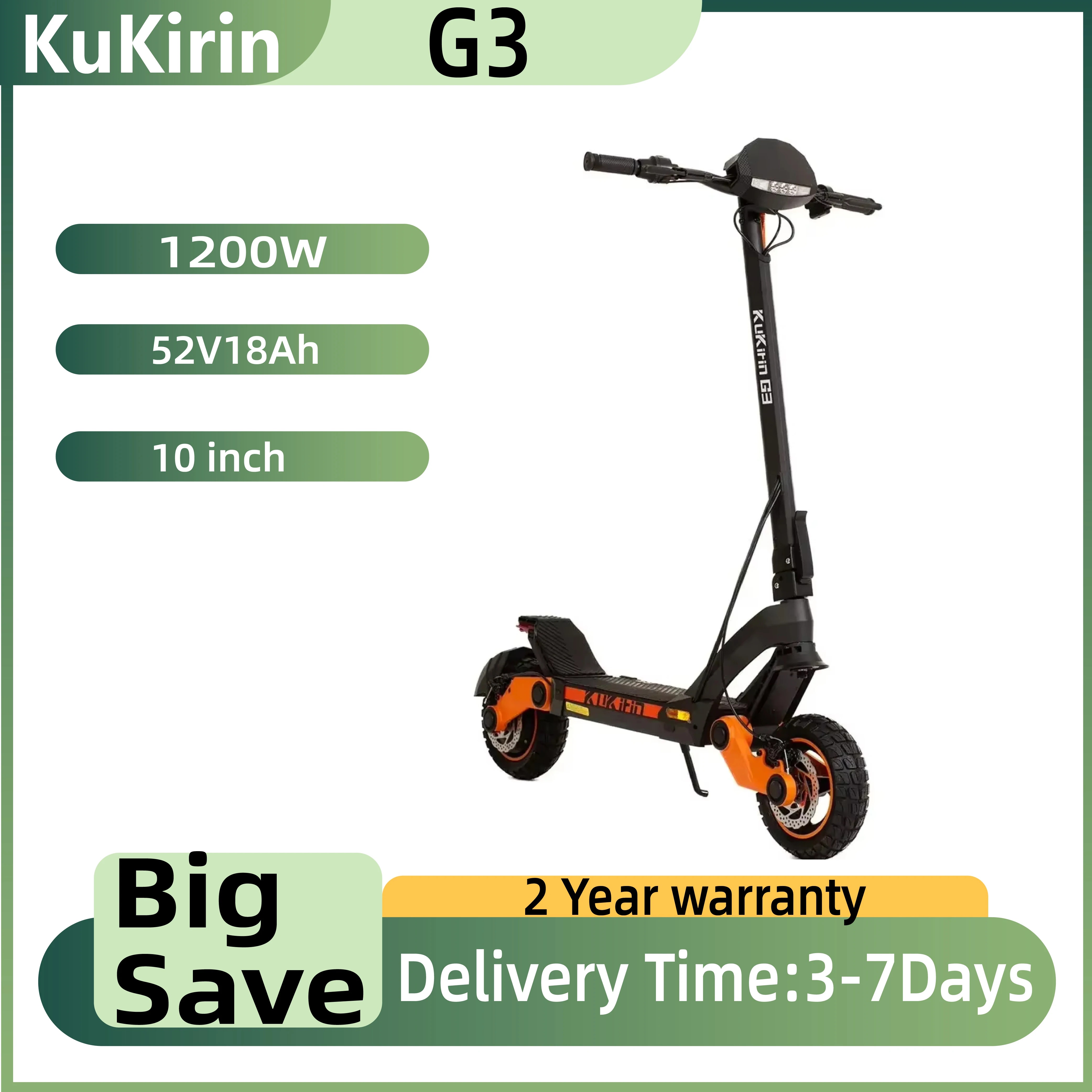 KuKirin G3 Scooter elettrico 1200W Motore posteriore 52V 18Ah 50KM/H Velocità massima Portata 70KM Display tattile Pannello di controllo Sospensione in TPU