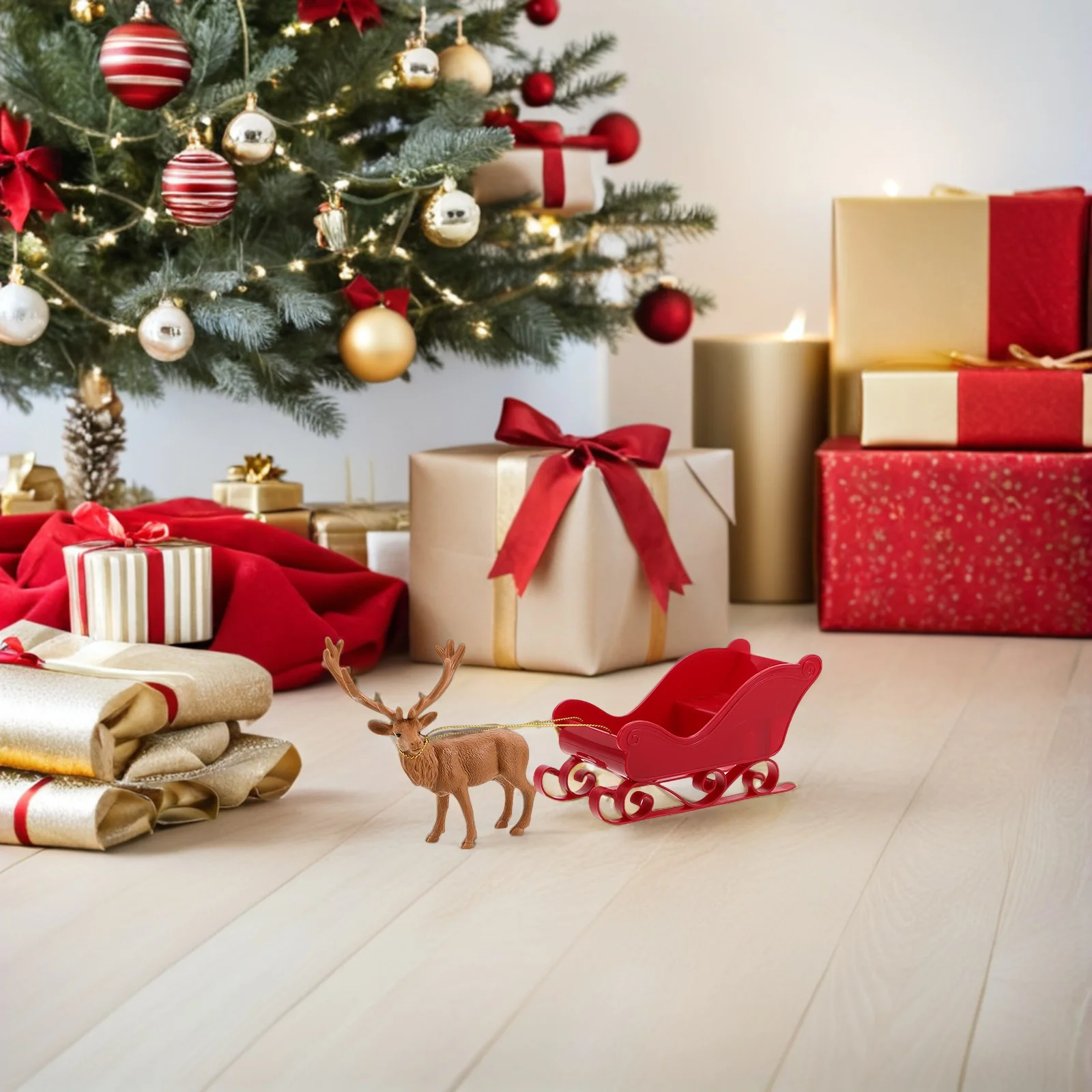 1 set di ornamenti in plastica per slitta di renne natalizie per decorazioni da tavolo per le vacanze, mensola per mensola, espositore per slitta, renna, decorazione natalizia