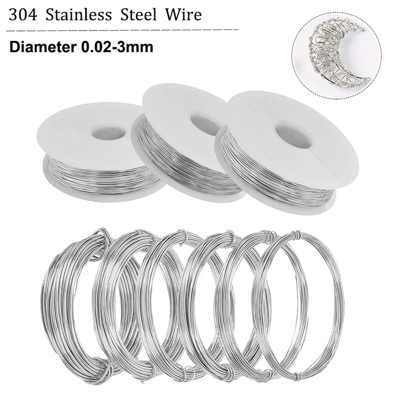 1 pz 1-100 metri 304 filo di acciaio inossidabile filo duro filo completamente duro diametro 0,02 mm-3 mm, per la creazione di collane braccialetto fai da te