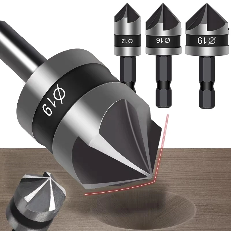 1 e 3 Flauto 90 ° Set di punte per trapano svasatore 6,3-60 mm Taglierina per smussatura HSS placcata in titanio per taglierina per sbavatura di fori metallici in legno