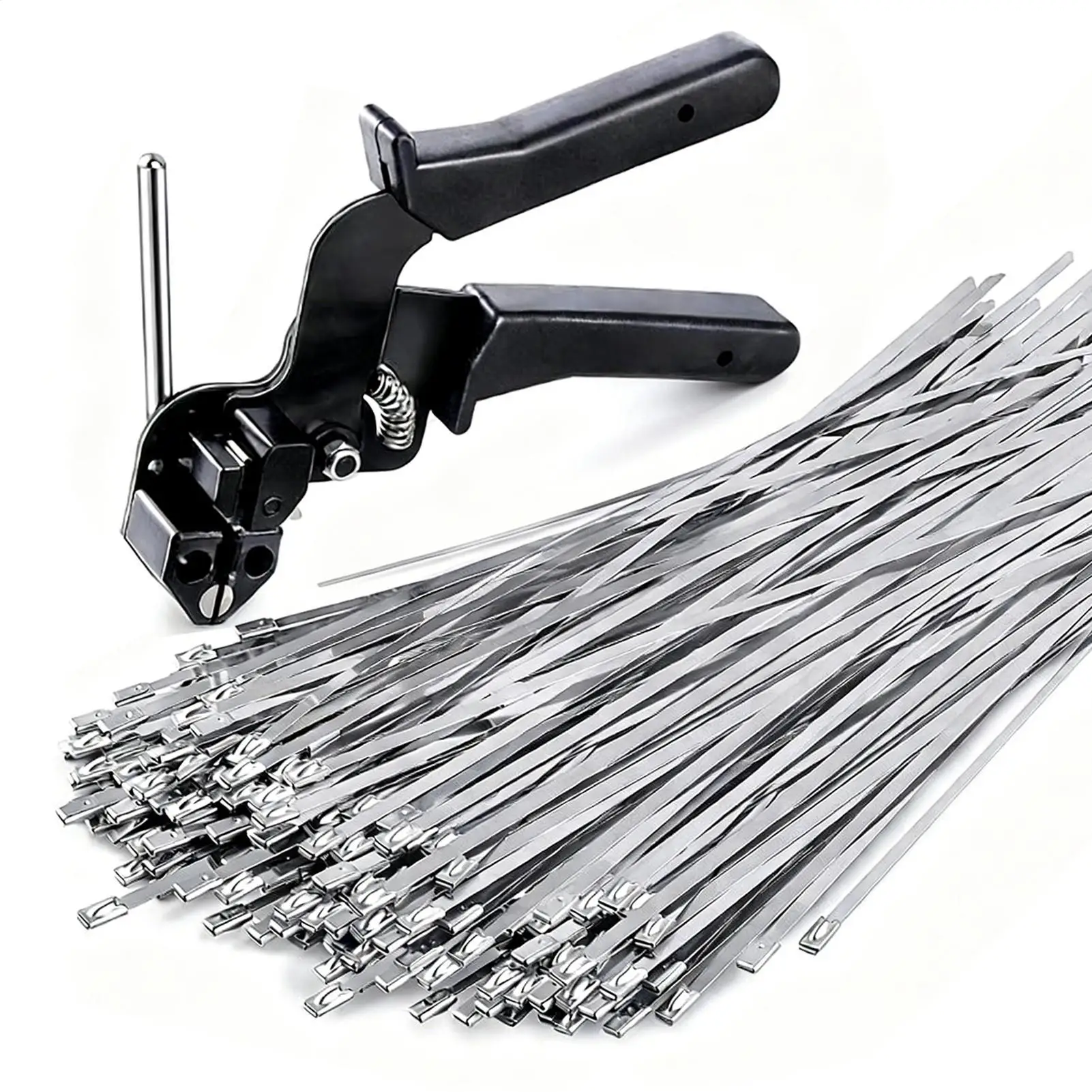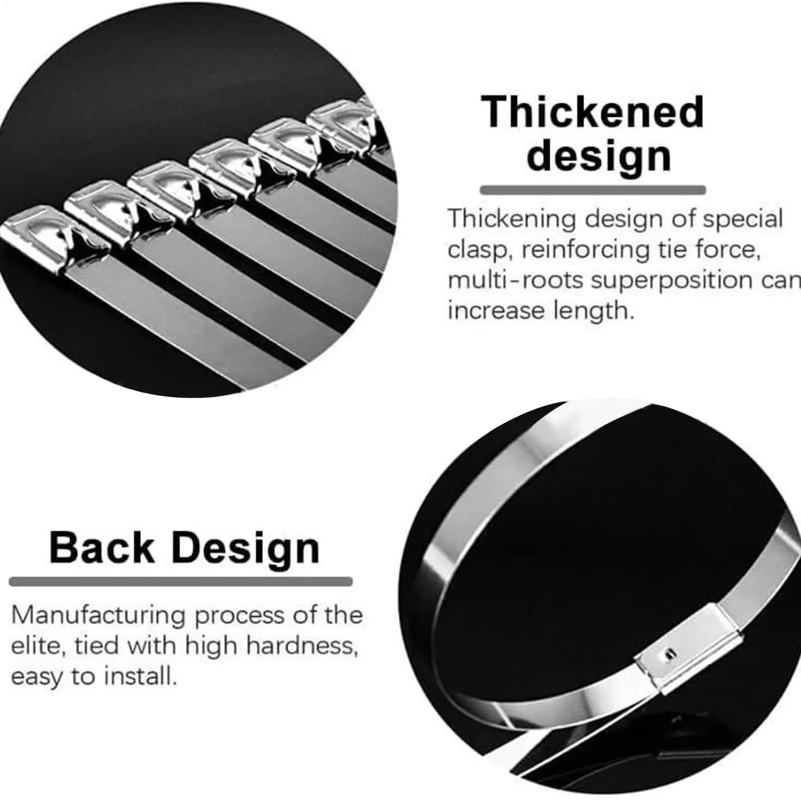 Fascette per cavi in acciaio inossidabile, multiuso, autobloccanti, resistenti, 100 pezzi, con chiusura in metallo, per interni ed esterni, per macchinari e veicoli