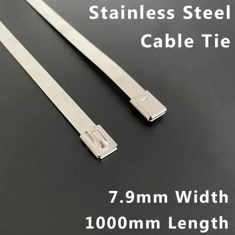 100 pezzi 304 # Fascette per cavi in acciaio inossidabile 7,9 * 1000 mm Corda per legare con morsetto di fissaggio super lungo monouso autobloccante per carichi pesanti