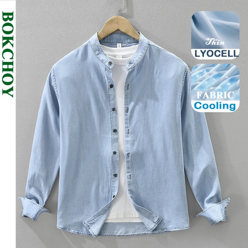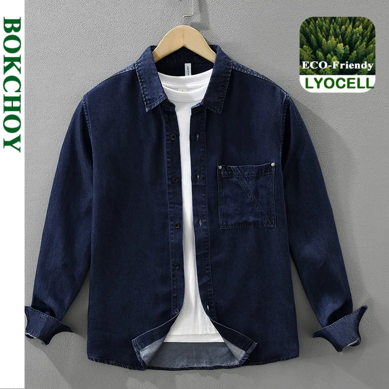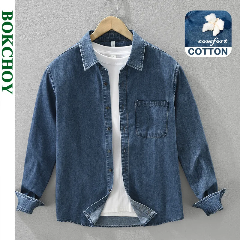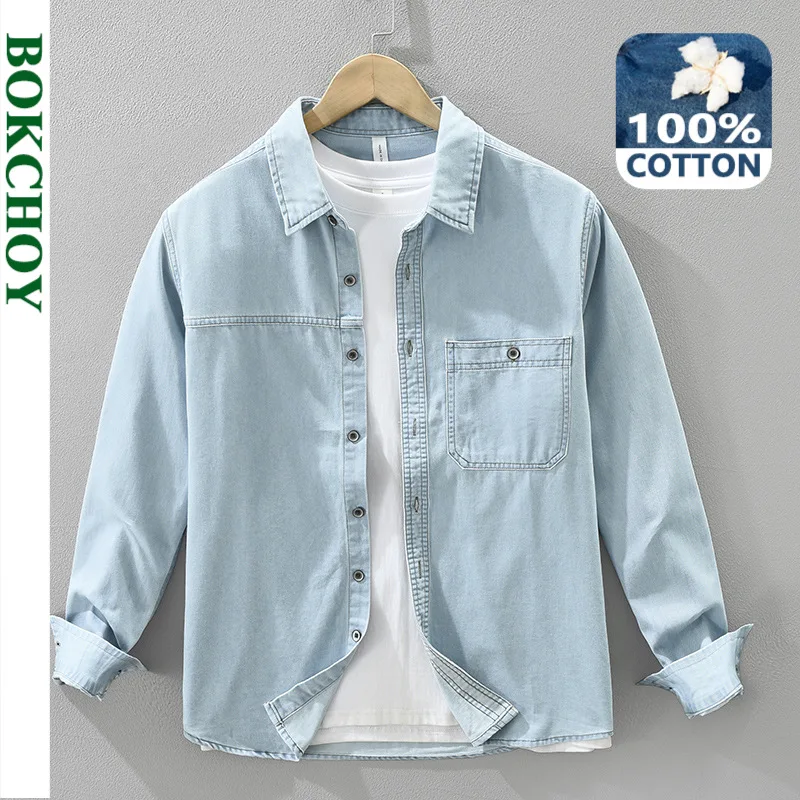 Camicia di jeans da uomo, giacca da lavoro blu americana primaverile e autunnale, giacca a maniche lunghe antirughe casual per giovani di inizio autunno