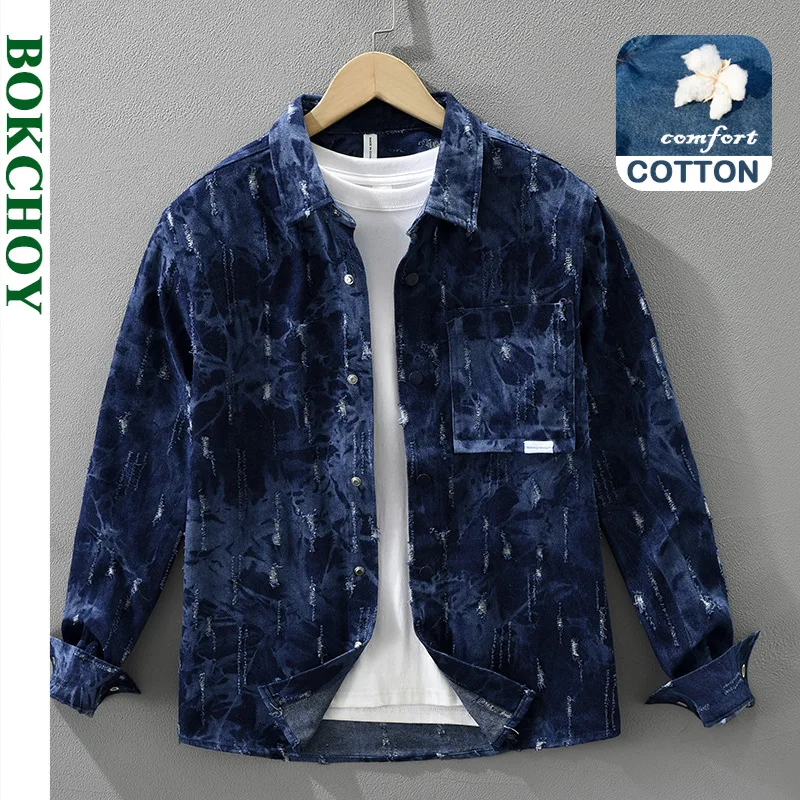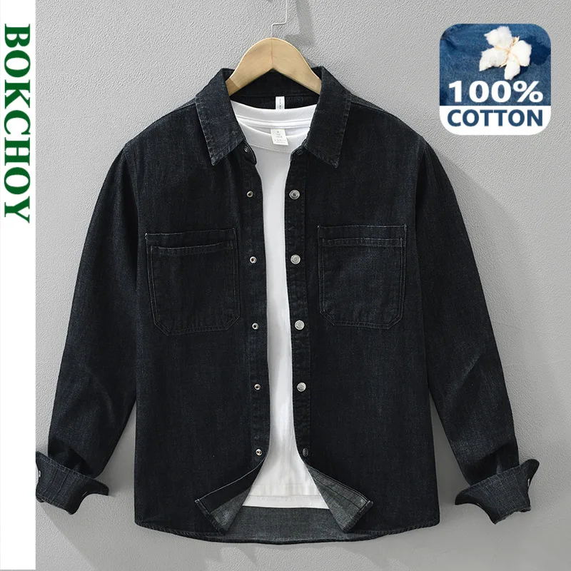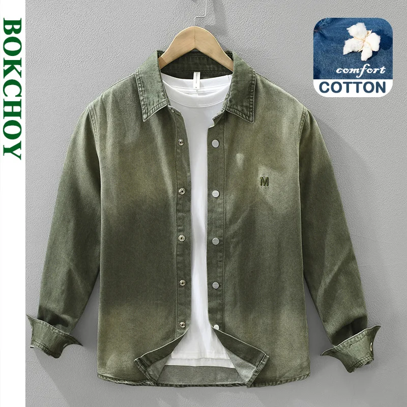 Camicia di jeans da uomo a maniche lunghe 2025 Camicia da lavoro allentata retrò giapponese primaverile e autunnale, giacca casual da ragazzo