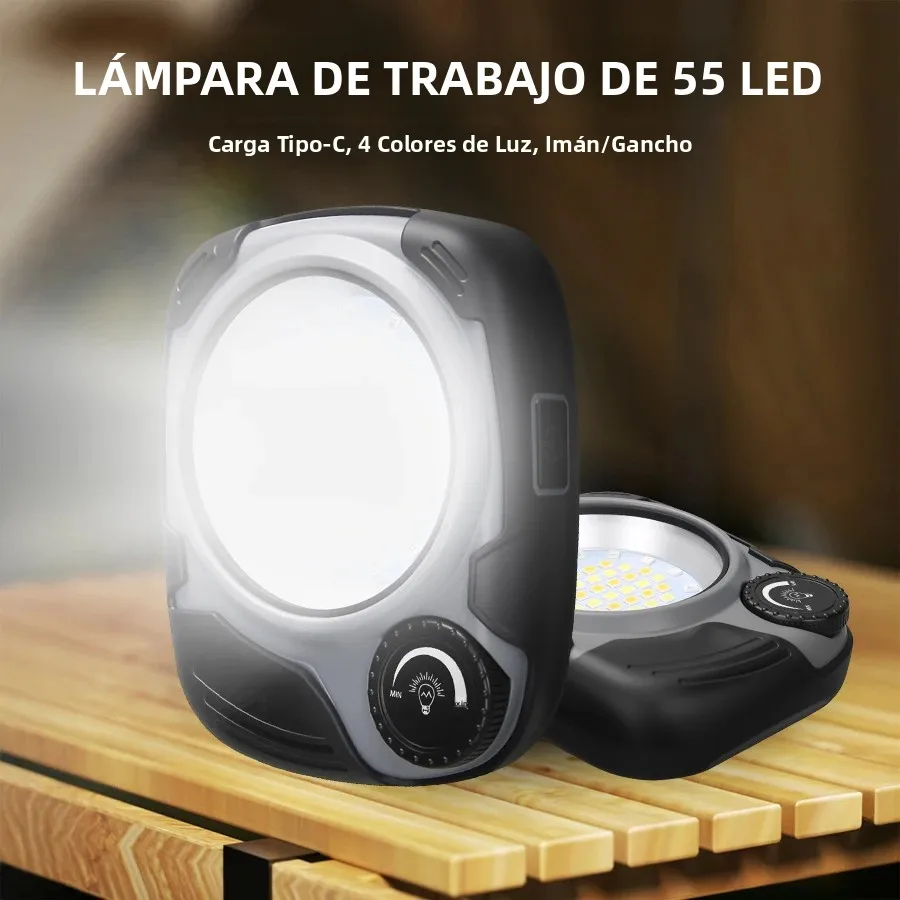 Lanterna da campeggio ricaricabile a LED/COB, attenuazione continua da 500LM, lampada impermeabile con gancio e magnete per escursionismo, campeggio, emergenza domestica