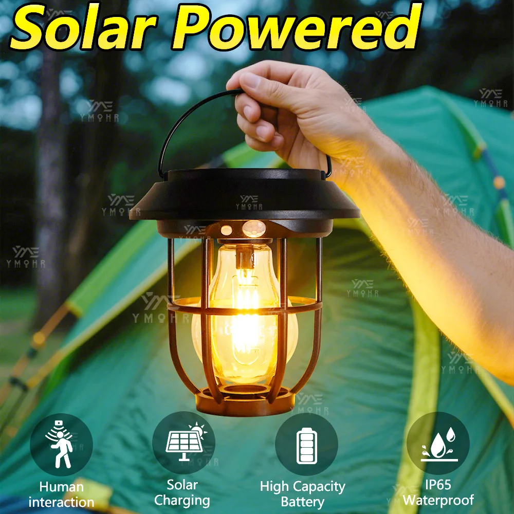 Luce da campeggio solare IP65 Luce esterna impermeabile 360 ° Lampada da tenda a LED con sensore IR a sospensione Lanterna da campeggio durevole portatile