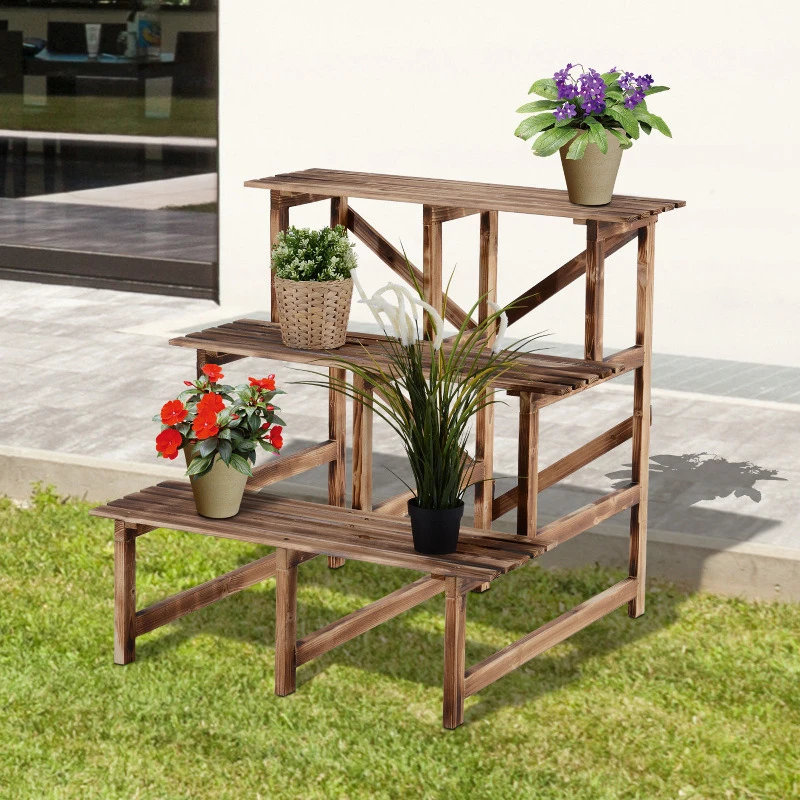 Portafiori/mensola per fiori, 3 livelli, in legno di abete, 80 x 80 x 78 cm, per giardino, balcone e terrazza, in loco