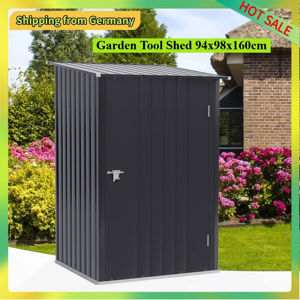 Comanlai Capannone per attrezzi da giardino impermeabile con anta, 94x98x160 cm, armadietto per attrezzi da giardino in metallo per esterni, acciaio zincato, grigio scuro