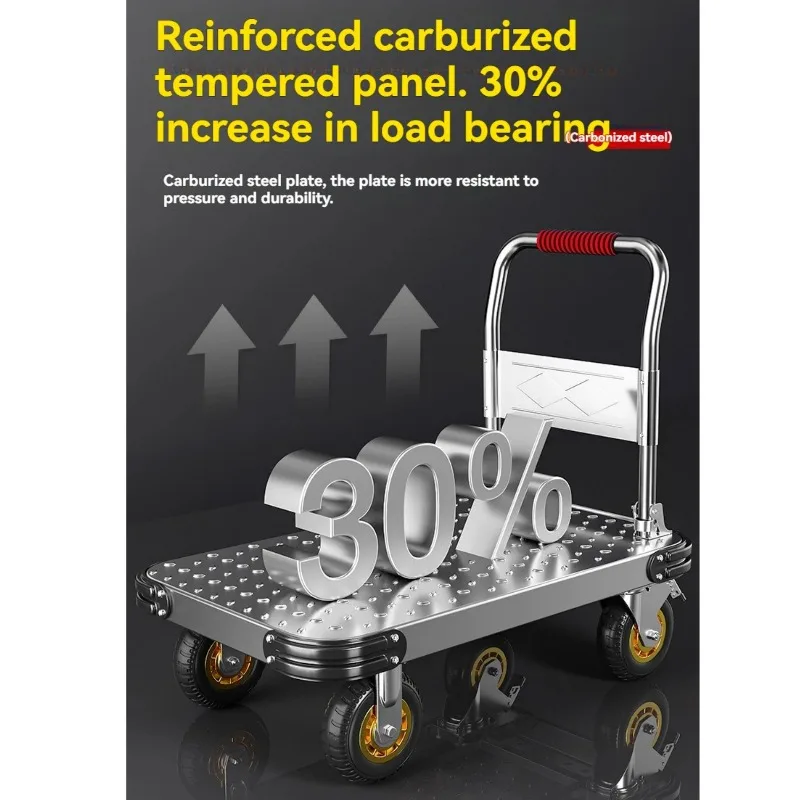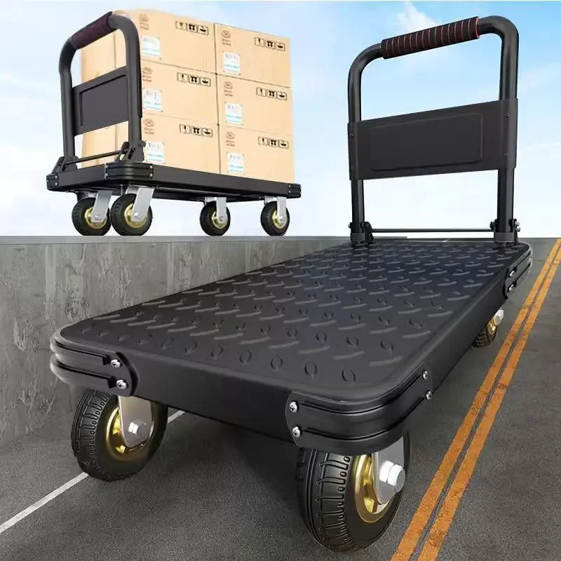 Piastra in acciaio ispessito, maggiore capacità portante, carretto a mano pieghevole, carrello portabagagli con ruote silenziose e rimorchio per camion