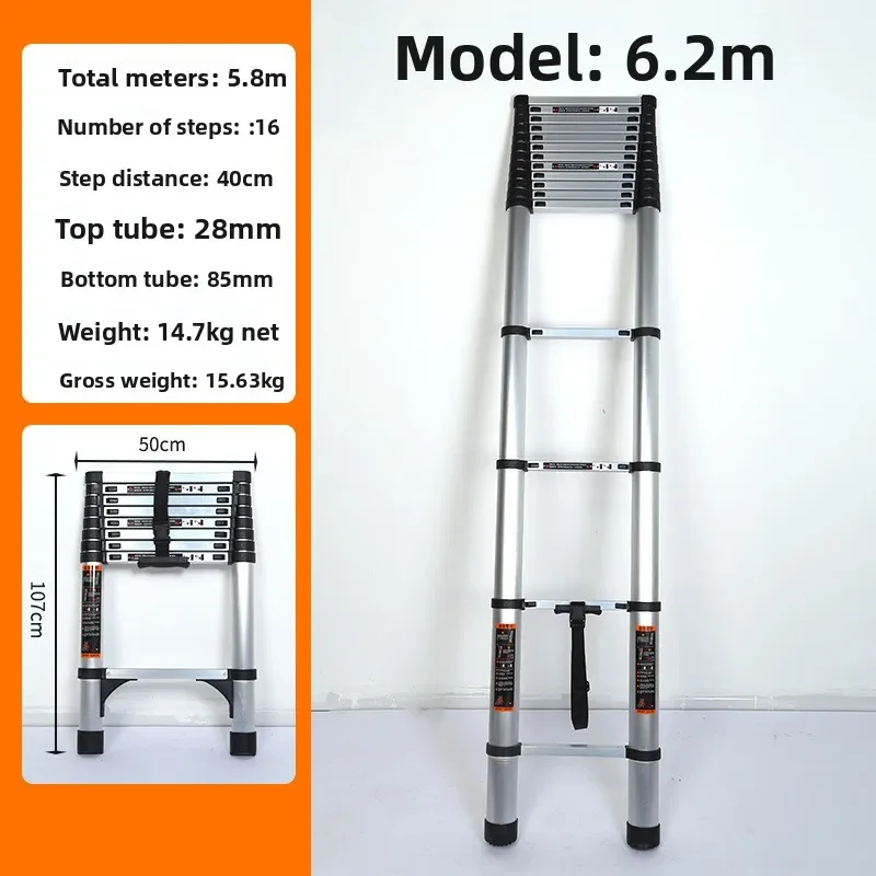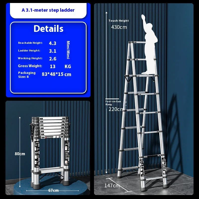 Scala telescopica in acciaio inossidabile, scala a zigzag, scala pieghevole portatile, ascensore, scala di ingegneria domestica, scala di bambù