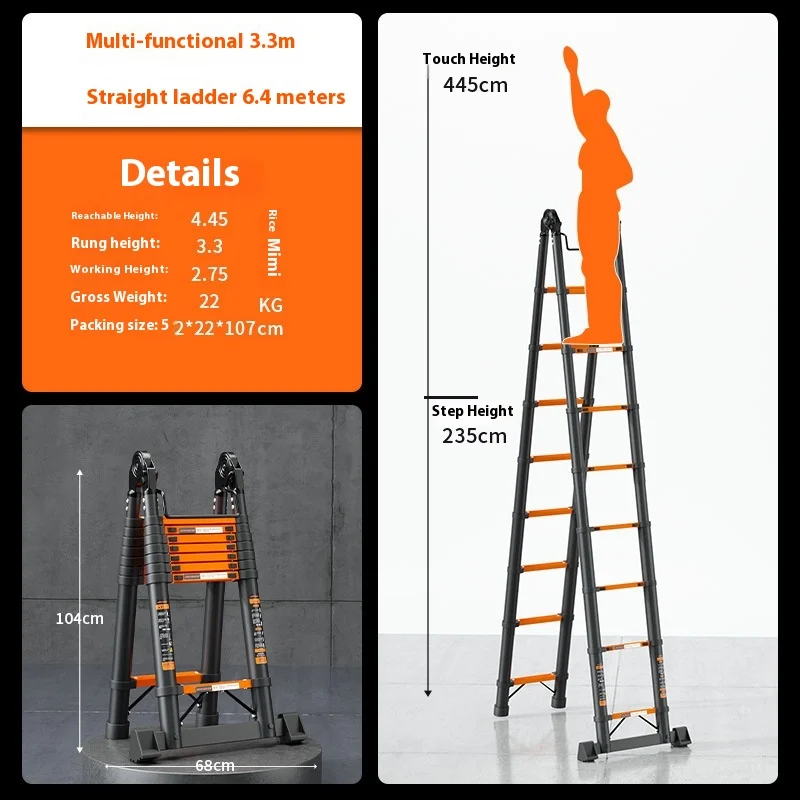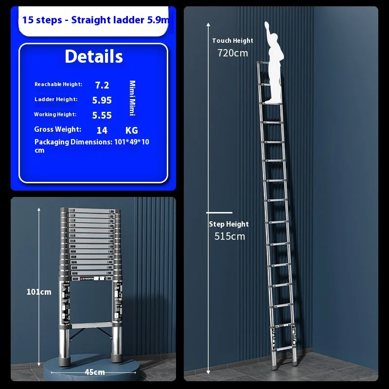 Scala diritta in lega di alluminio addensata Scala telescopica multifunzionale a spina di pesce Scala pieghevole e sollevamento domestico