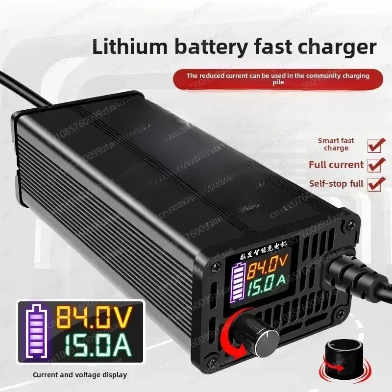 Caricabatterie al litio 72V con scocca in alluminio, corrente regolabile 8A, ricarica rapida, specifico per batterie al litio ternario ferro.