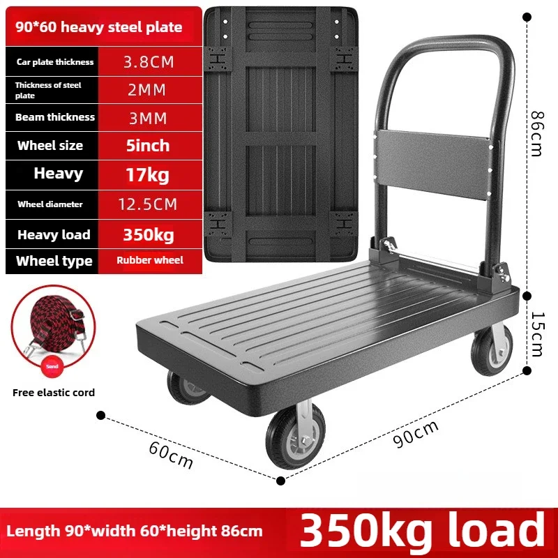 Piastra in acciaio spessa, carretto a mano ad alto carico, veicolo da trasporto commerciale e domestico, carrello portabagagli, ruota frenante silenziosa