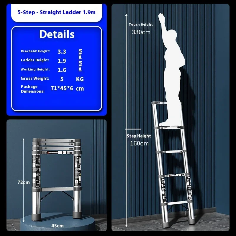 Scala diritta telescopica in acciaio inossidabile, ascensore portatile, scala di ingegneria domestica, scala di bambù, antiscivolo addensato