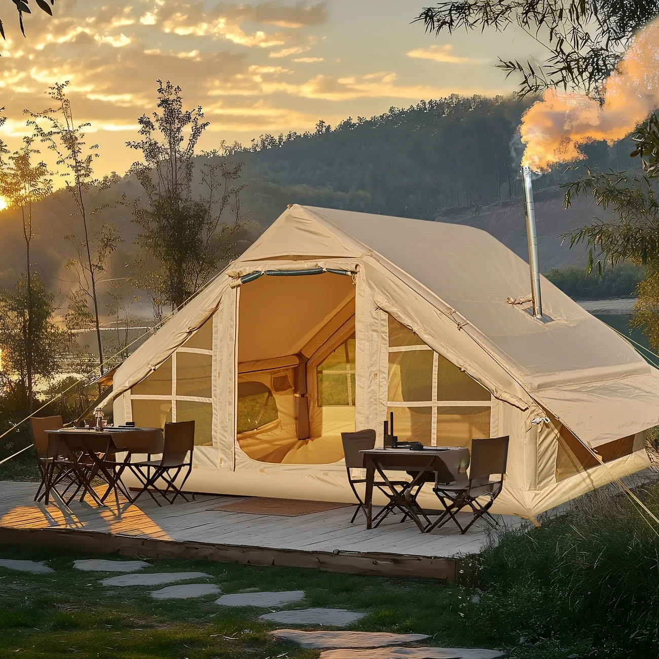 Tenda da caccia di lusso per hotel all'aperto Tenda da campana Oxford in tela di cotone impermeabile con tenda da stufa resort