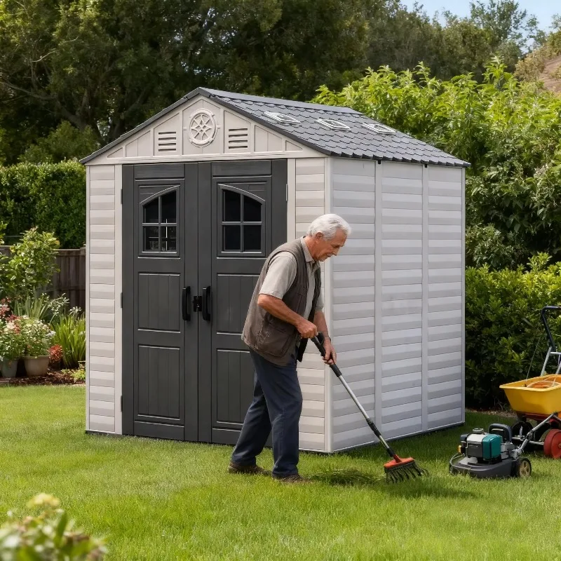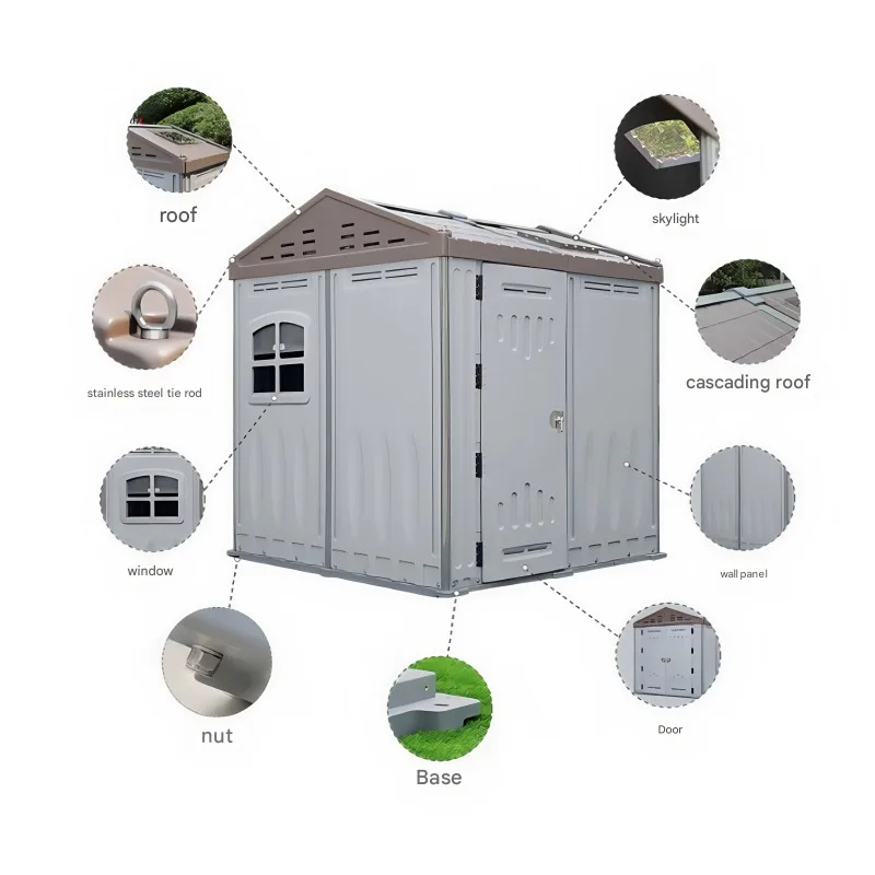Capanno da Giardino in Plastica HDPE Impermeabile e Antivento, Essenziale per Organizzare gli Spazi Esterni, con Base Rinforzata