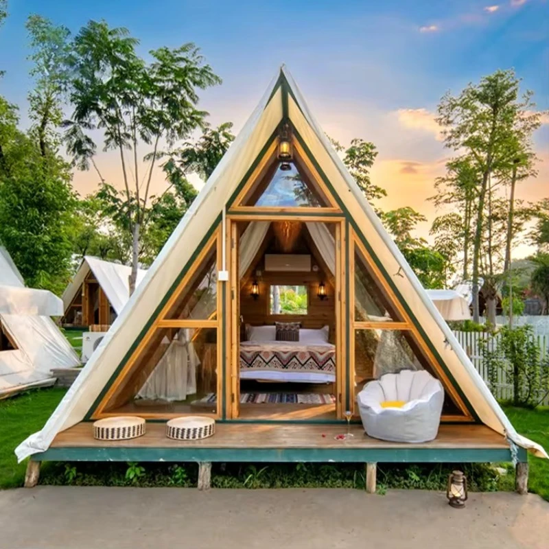 Riparo triangolare in legno altamente resistente al vento e robusto progettato per impianti permanenti all'aperto nelle tende commerciali
