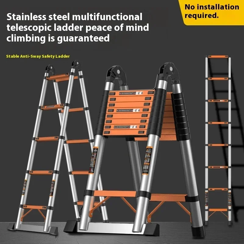 Scaletta doppia telescopica in acciaio inossidabile, 1,5-3,9 metri di altezza, design antiscivolo, telaio ispessito, pedali antiscivolo allargati