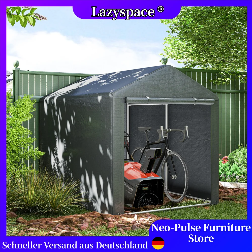 Tenda da garage con porta con cerniera Lazyspace, tenda portaoggetti con protezione UV, garage con pellicola idrorepellente per giardino, 1,6 x 2,18 x 1,72 M