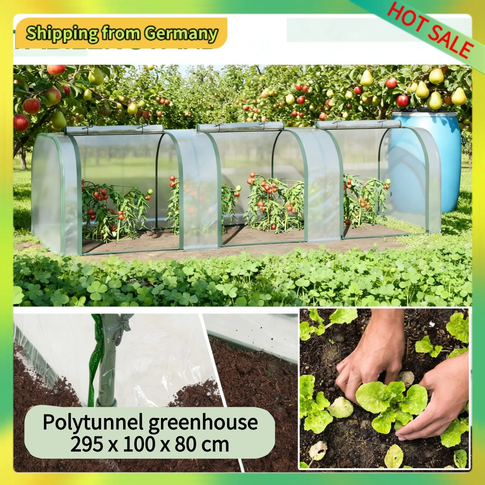 Comanlai Serra a tunnel in PVC trasparente con 3 finestre con doppia cerniera e struttura in acciaio, casa per la coltivazione di piante, 295x100x80 cm